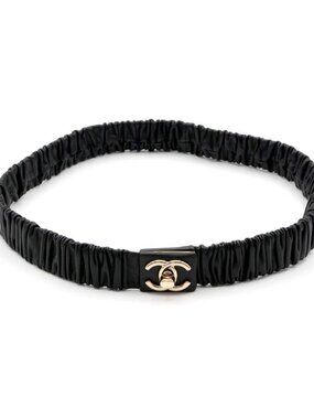 Chanel Black Gold Coco Mark Turnlock Lambskin Belt