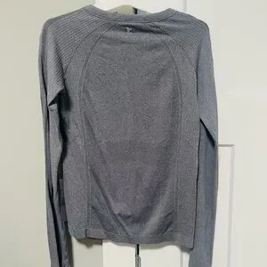 Stay comfortable and stylish during your workouts with this used Old Navy Gray Long Sleeve Activewear Top in size Small. Made from high-quality materials, this top is perfect for any fitness routine or casual outing. The long sleeves provide extra coverage and warmth, while the breathable fabric ensures comfort all day long. The classic gray color makes it easy to pair with any bottoms for a versatile look. Whether you're hitting the gym or running errands, this activewear top from Old Navy is a must-have in your wardrobe. Add this top to your collection today and elevate your activewear game!