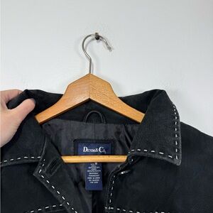 Vintage Black Suede Leather Jacket Contrast White Stitching Patch Boho 90s