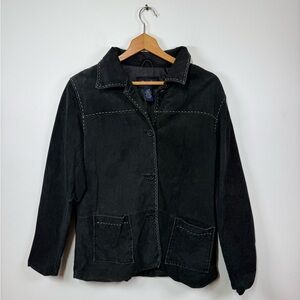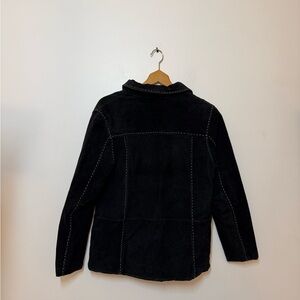 Vintage suede jacket, black leather coat, contrast white stitching, 90s fashion, boho chic, Western style, shacket, patch pockets, y2k leather, festival wear, authentic vintage, medium leather jacket, reformation leather jacket, sezane, coastal cowgirl
