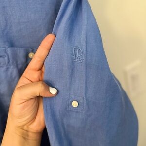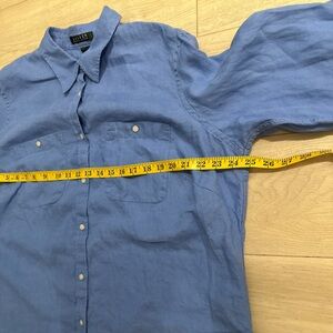 Lauren Ralph Lauren Classic Blue Shirt 100% Linen XL Preppy Old money