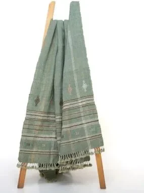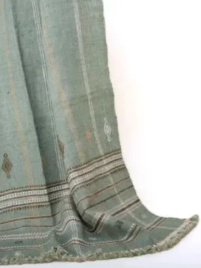 A beautifully handcrafted green Indian coverlet made from soft, breathable wool. This versatile lightweight blanket functions as a stylish woolen bedspread, couch blanket, or cozy sage bed runner, adding warmth and texture to any room. The calming sage green hue complements a variety of interior styles, from minimalist to bohemian. Whether draped over a bed, sofa, or chair, JADE offers comfort and sophistication