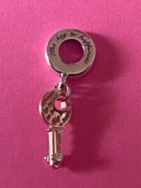 Pandora Two-tone key & Sliding Heart Dangle Charm