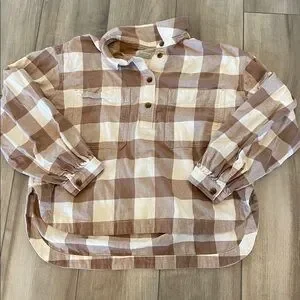 Everlane Flannel Button Down Cotton Poppver Brown and White Checkered Shirt