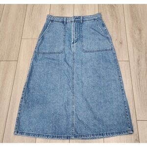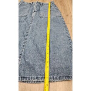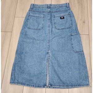 Vans Womens Denim Blue Jean Midi Skirt A-Line Carpenter Pocket back Slit Size 27