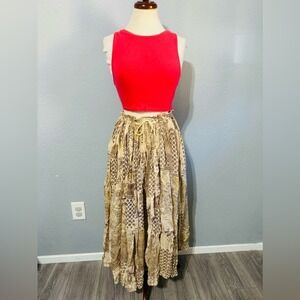 100% Cotton Short Circuit Skirt Size L Maxi Skirt Boho Floral Beaded Tassel
