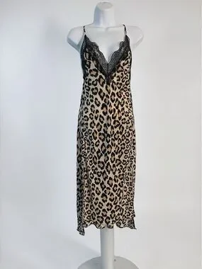 Victoria’s Secret Leopard Slip Dress XS Lace Trim Satin Chemise Nightgown NWT