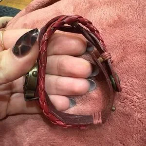 Vintage Red Braided Leather Women's Bracelet Watch needs battery