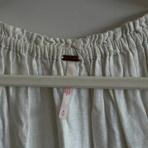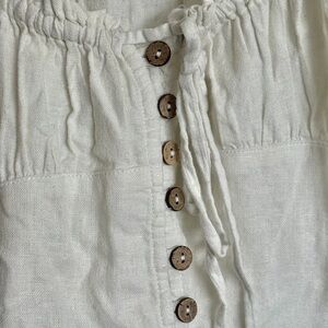 Soft cream mini dress by Free People. Scoop neckline with button-front detail. Short puff sleeves and smocked trim. Flowy tiered skirt for easy movement. Lightweight and breezy fabric.