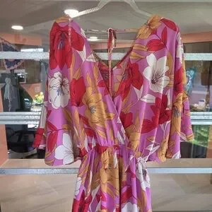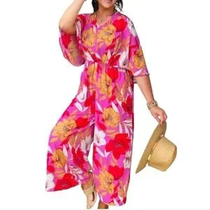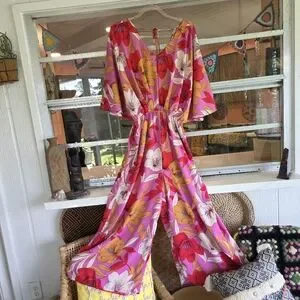 Easel Small Pink Jumpsuit Vibrant Tropical Wide Leg Palazzo Style Vacation