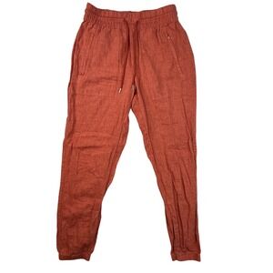 Athleta 100% Linen Joggers Rust Orange Drawstring Pants Womens Size 0