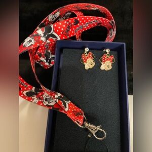 Disney Red Minnie Earrings and ID Holder Set NIB