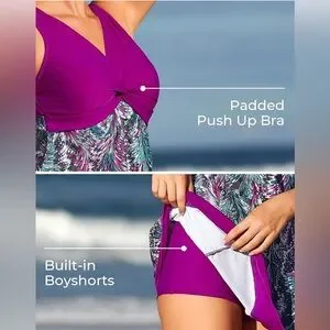 NWT đź’śMiYang Women's Plus Size Printing Padded High Waist Swimdress