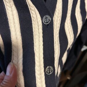 Brooks Brothers Navy & White Striped V-Neck Cardigan Anchor Buttons