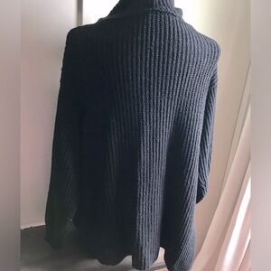 Soft ribbed knit turtleneck sweater in black. Designed for everyday warmth and effortless layering. Relaxed fit with long sleeves for comfortable wear. Easy to pair with jeans or leggings for a polished casual look. 6 inch Left side split L