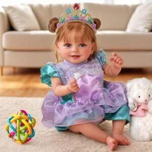 Meet Your Baby Princess: Introducing our charming reborn baby doll, a delightful little girl with sparkling blue eyes and an irresistible smile. Dressed in her enchanting pink princess dress, she’s ready to find a loving family to cherish her.