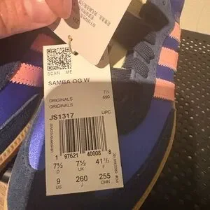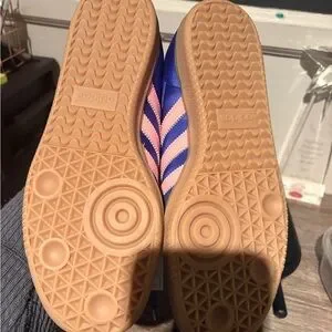 adidas Royal Blue Sneakers with Pink Stripes with gum bottom- samba OG