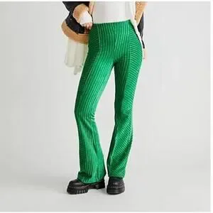 Free People Women's Slim Pull-On Velvet Flare Pants Green Bee Large Retro Funky
