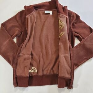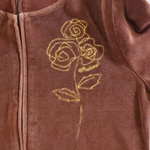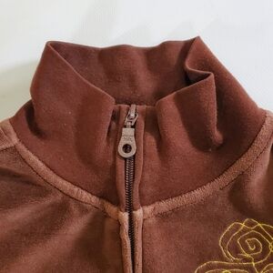 2413 * Sideout Embroidered Rose Velour Zip Jacket Brown Size M (10/12) Y2K