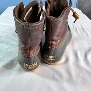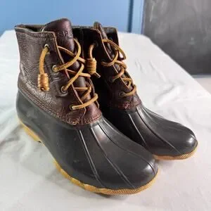 Sperry Saltwater Duck Boots Womens Sz 8 Brown Leather Waterproof Rain Snow