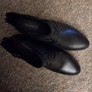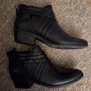 Baretraps Black Strappy Shooties Ankle Boots Stacked Heel Goth Edgy 8 1/2W