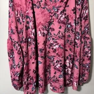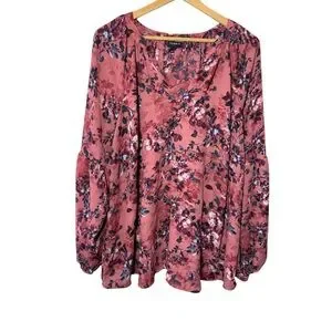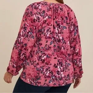 Torrid Georgette Floral Puff Sleeve Peasant Blouse 2X Pink