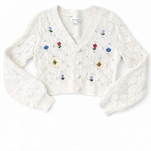 Urban revivo floral embroidered cardigan off white button down bell sleeve sz 4