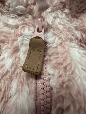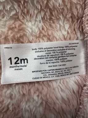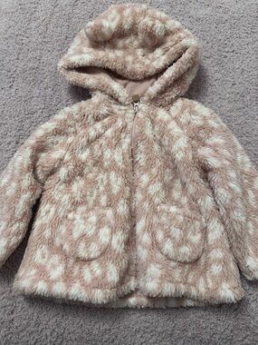 Carter’s super soft pink teddy fleece jacket in size 12 months. Such a cute cozy layer with a zip front, hood, little bear ears, and front pockets.