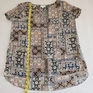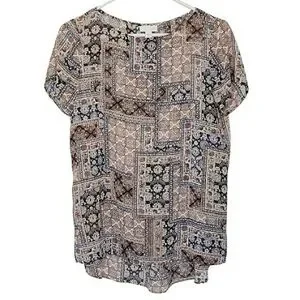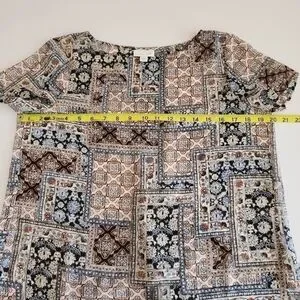 1037 * J. Jill Patchwork Print Blouse Cream Brown Size XS