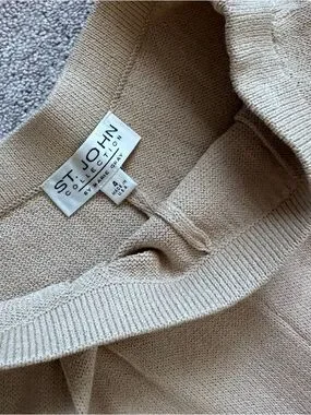 St John Collection Santana Knit Pants Beige Pleated High Waist Sz 4 Quiet Luxury