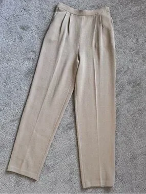 Timeless vintage St. John Collection by Marie Grey knit trousers in a soft neutral beige. Classic Santana knit with a structured drape, front pleating, and an easy pull-on waistband. Made in USA 🇺🇸