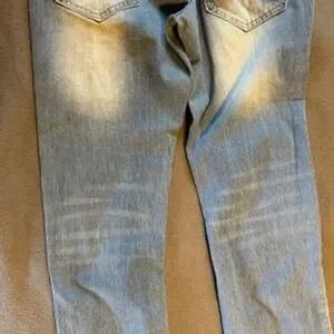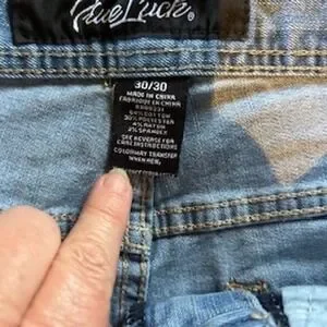 True Luck Mens Jeans Light Wash Straight Leg Distressed Faded Denim Size 30/30