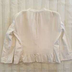 Zara white blazer jacket in a clean, minimal design with a modern structured fit. Perfect for elevating any outfit—wear it casually with denim or dress it up for work or events.