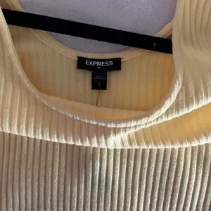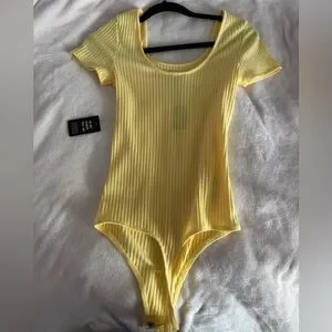 Express women’s Ribbed Short-Sleeve One-Piece Bodysuit in Yellow