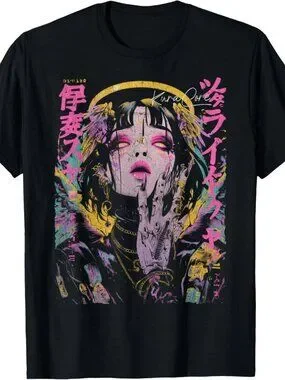 Japanese Streetwear Cyberpunk Angel Y2K Techwear Manga Anime T-Shirt 187
