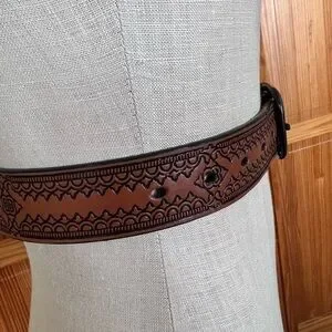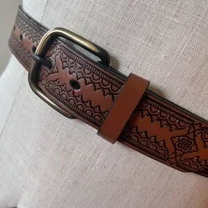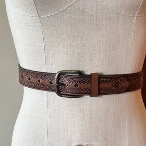 Brown Faux Leather Tooled Belt Vegan Casual Unisex