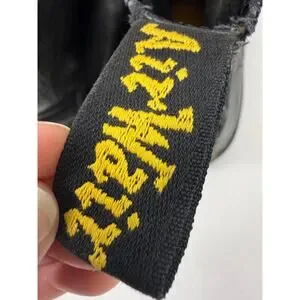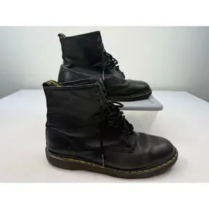 Classic Dr. Martens black leather lace-up boots with signature yellow stitching and air-cushioned sole. Men’s size 12.