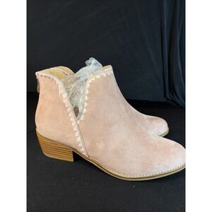 Corkys Footwear Spice It Up 2-Inch Stacked Heel Booties Pink Faux Suede, 9