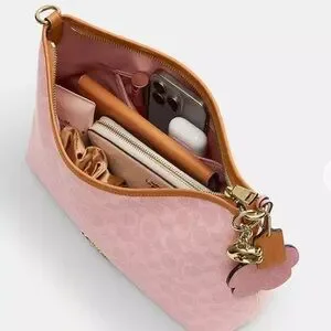 NWT Coach Powder Pink Laurel Signature Shoulder Bag with Flower Charm