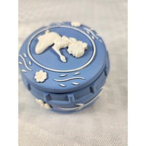 VINTAGE WEDGWOOD BLUE JASPERWARE STYLE TRINKET BOX POWER BOX PRAYING GIRL Flower