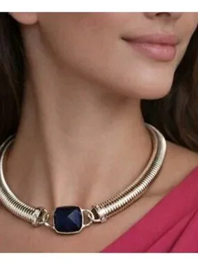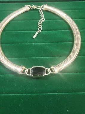 Vintage Saks Fifth Avenue Gold Tone Collar Necklace Black Stone Center 80s