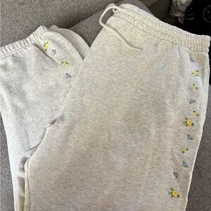 VS PINK Grey Sweatpants with Yellow & Purple Flower Embroidery