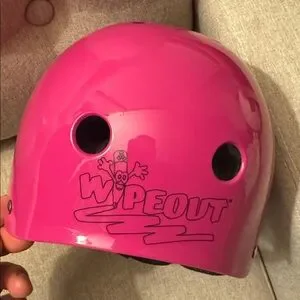 kids helmet in bright pink. Durable shell with multiple vents for airflow. Secure adjustable strap for a snug fit. Ideal for biking, skating, and scooting. Comfortable, protective, and kid-friendly.