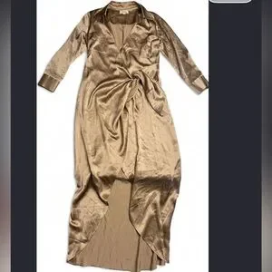 L'AGENCE Kadi Silk Maxi Ling Wrap Silk Dress V Neck Cappuccino Luxury Formal