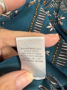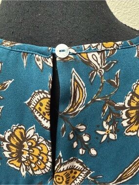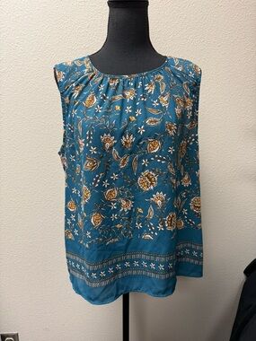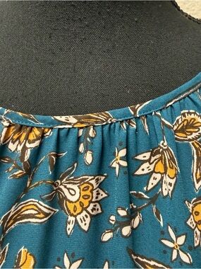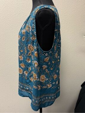 Les Serein Teal Floral Blouse Sleeveless Boho Lightweight Top Size Large