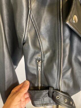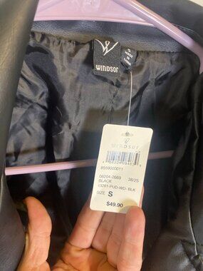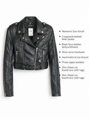 Windsor Faux Leather Moto Jacket Womens Small Black Cropped Belted NWT
