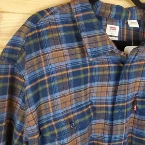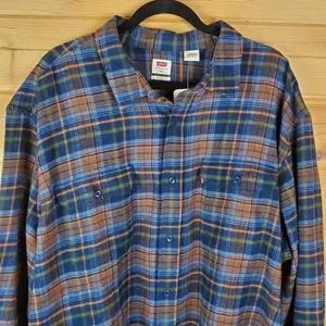 Levi's Relaxed Fit Blue and Brown Plaid Button Up Heavy Shirt Size 3XL