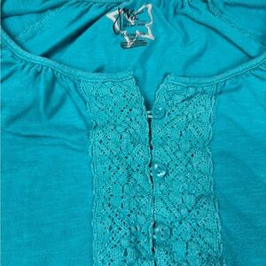 Just My Size Teal Short Sleeve Top Womens 1X 16W Lace Henley Plus Size Tee