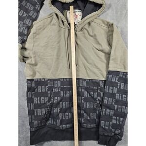 True Religion Hoodie Mens XL Black Green Long Sleeve Logo Colorblock Monogram