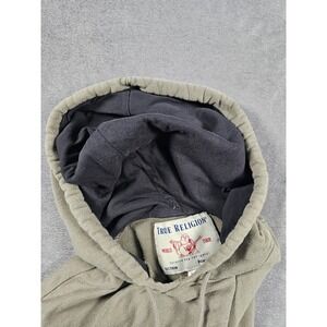 The True Religion Hoodie for Men in XL size features a black color with green logo accents, making it a stylish and versatile piece. With long sleeves, a drawstring closure, and a heavyweight knit fabric of polyester and cotton, this hoodie offers both comfort and warmth for the winter and fall seasons. The pullover style, regular fit, and classic designer theme make it a timeless addition to any man's wardrobe, suitable for outdoor activities or casual everyday wear. Designed by True Religion, this hoodie is machine washable and features pockets for added convenience.